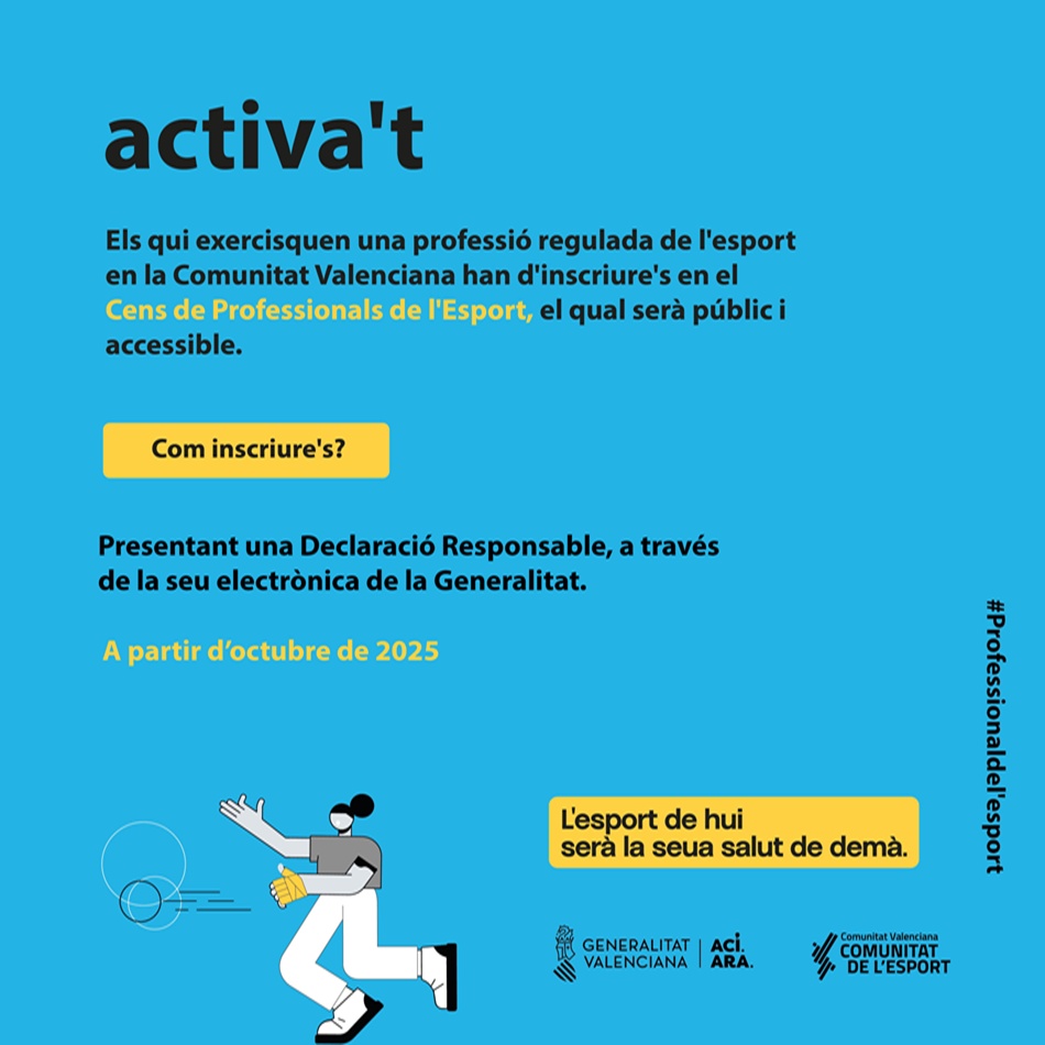 S’activa el procés d’inscripció en el Cens de Professionals de l’esport i l’activitat física de la Comunitat Valenciana.