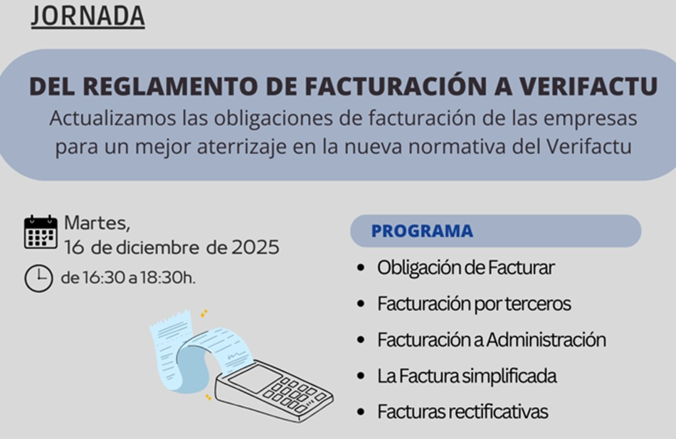 - De la mano de Unión Profesional de Valencia, para todos los colegiados de COLEF CV interesados podrán realizar una jornada formativa, por importe reducido, con sesión técnica esencial para actualizar las obligaciones de facturación de las empresas y facilitar el aterrizaje en la nueva normativa del sistema Verifactu.